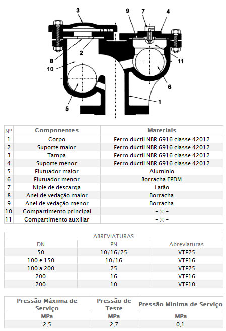 Gabaritos de furação conforme NBR 7675 (ISO 2531), nas classes PN 10, PN 16 e PN 25.